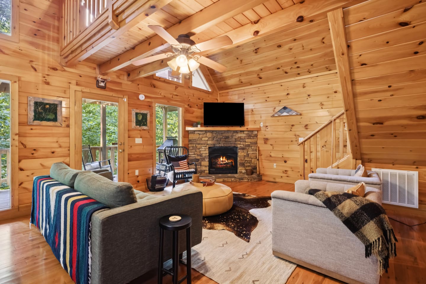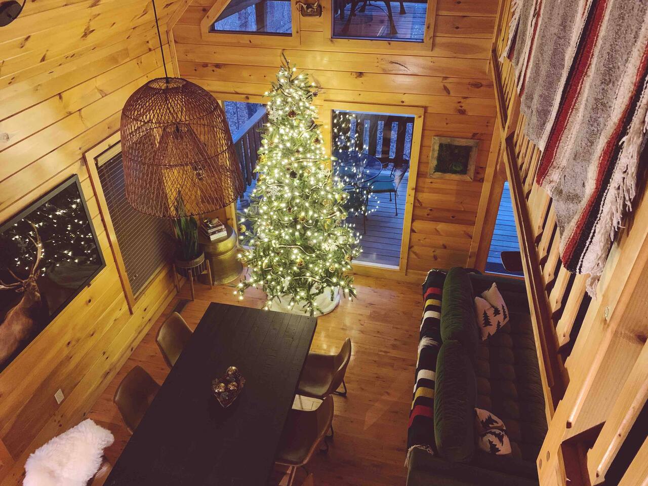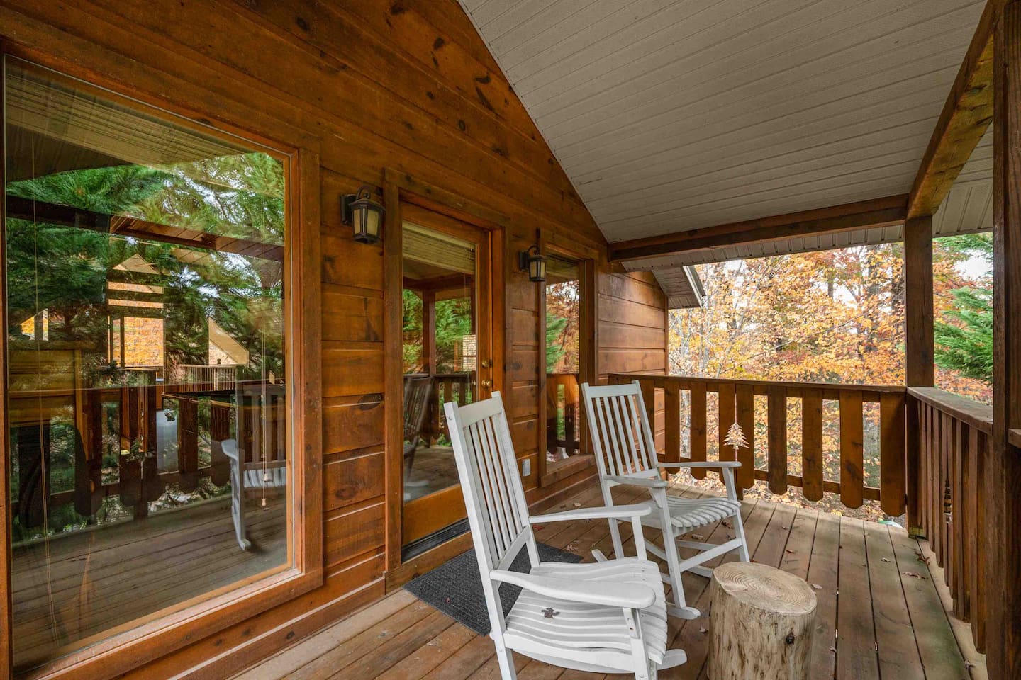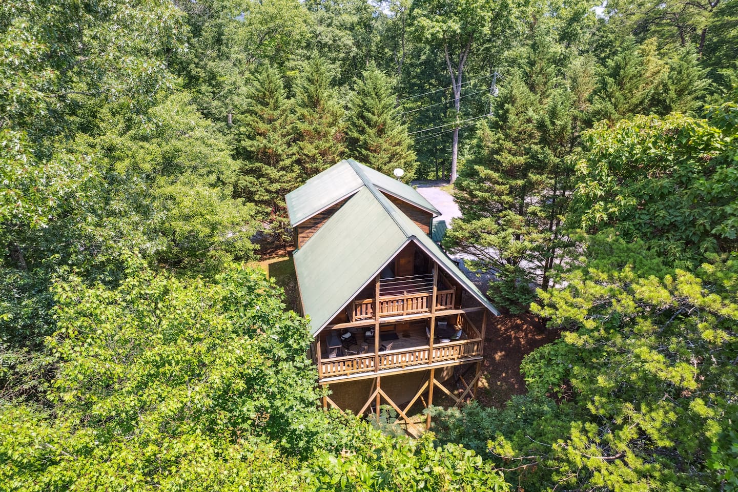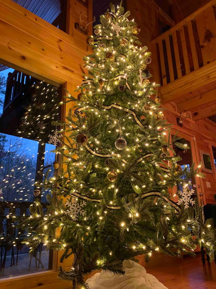 Our area is typically very quiet. You may hear echoes from other cabins in the ridge. The cabin is on one acre filled with trees. There is one cabin across the street from the front of the cabin and a few others down on our road, but the setup of our cabin makes it feel extremely private once you are inside. There are no cabins directly facing the back porches and they are many acres away.