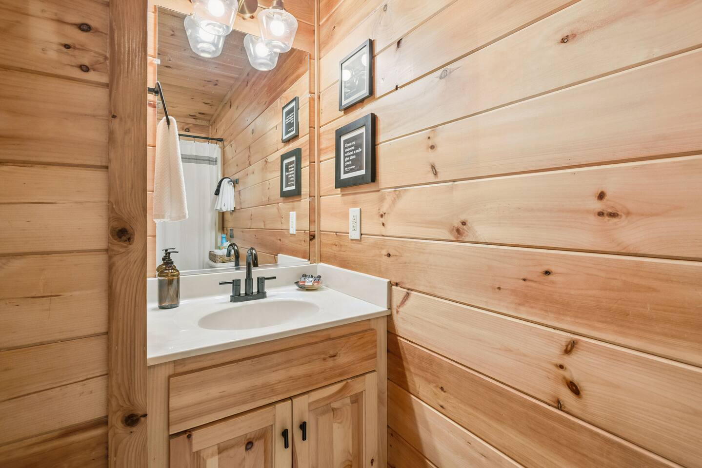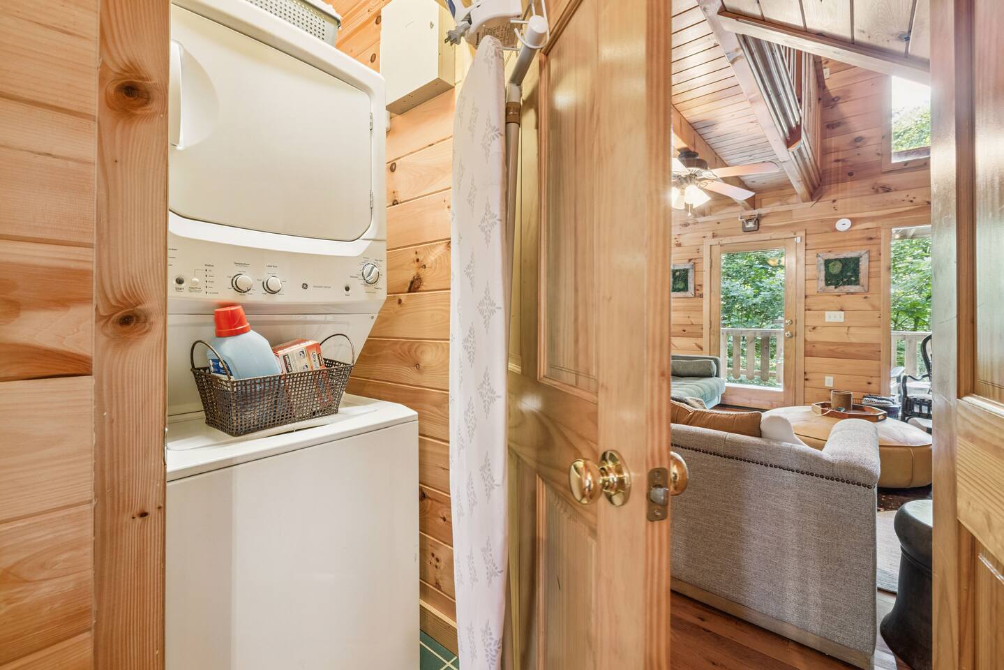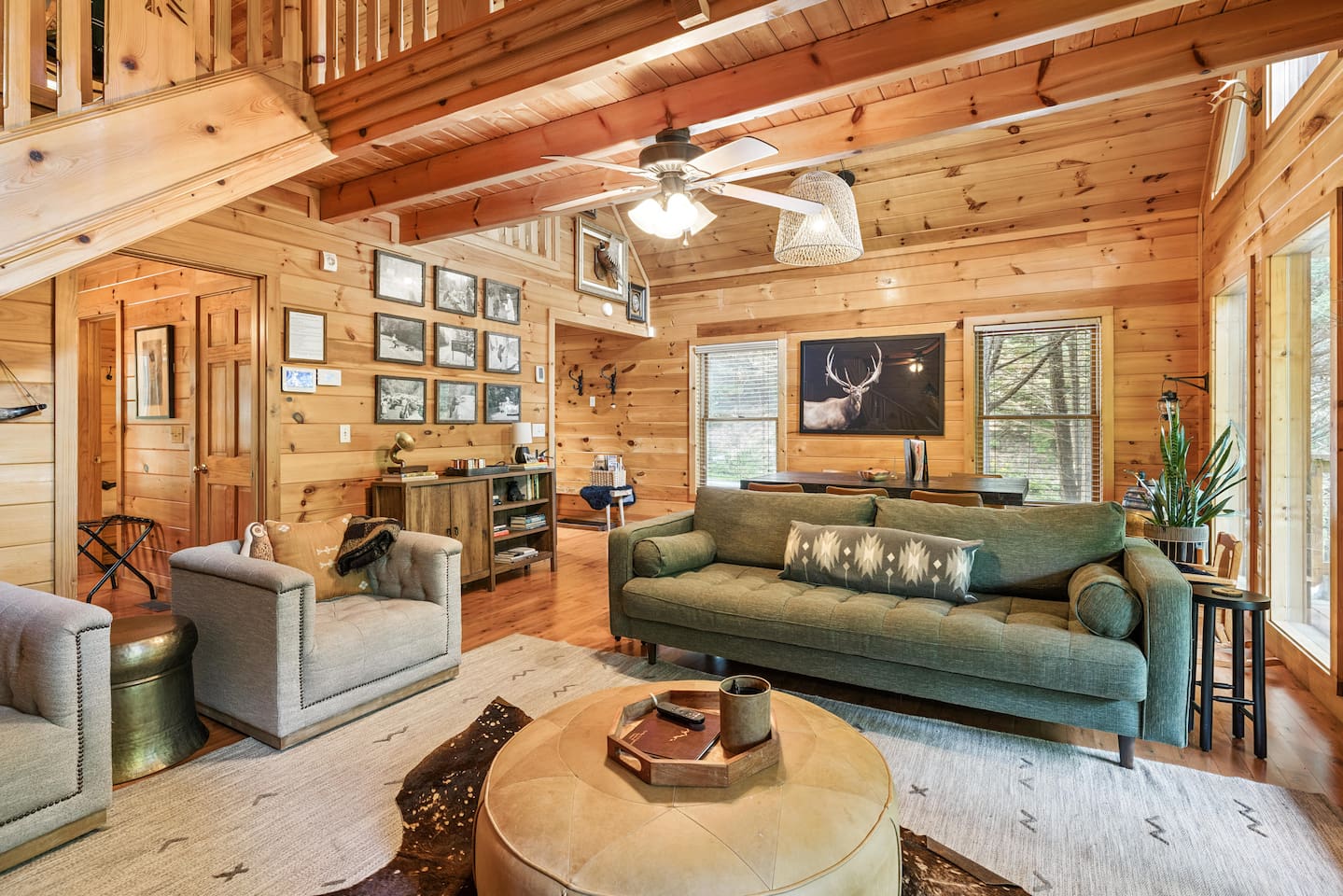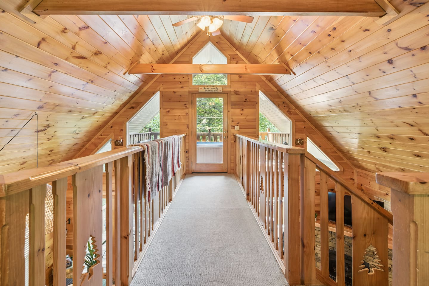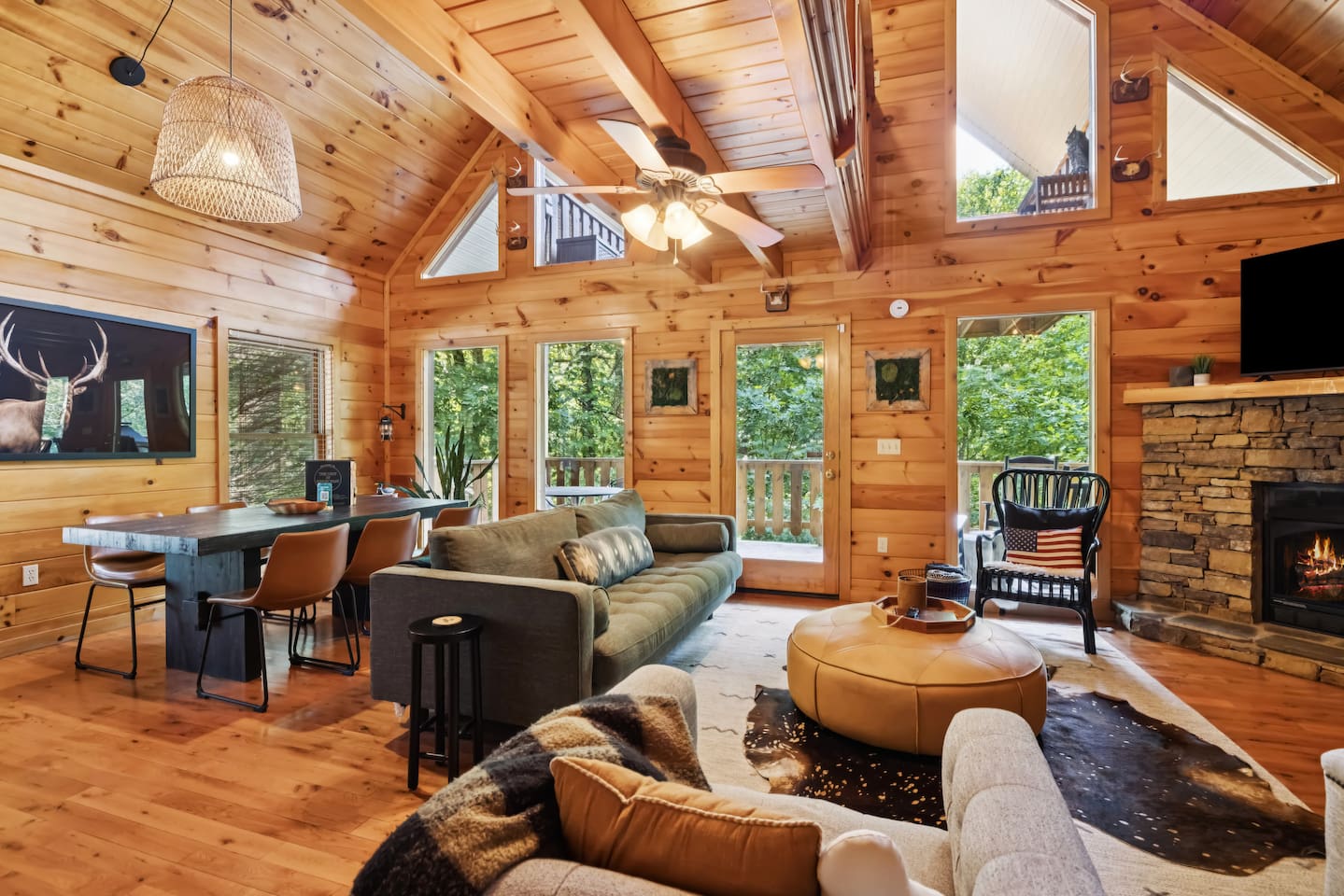 Our area is typically very quiet. You may hear echoes from other cabins in the ridge. The cabin is on one acre filled with trees. There is one cabin across the street from the front of the cabin and a few others down on our road, but the setup of our cabin makes it feel extremely private once you are inside. There are no cabins directly facing the back porches and they are many acres away.