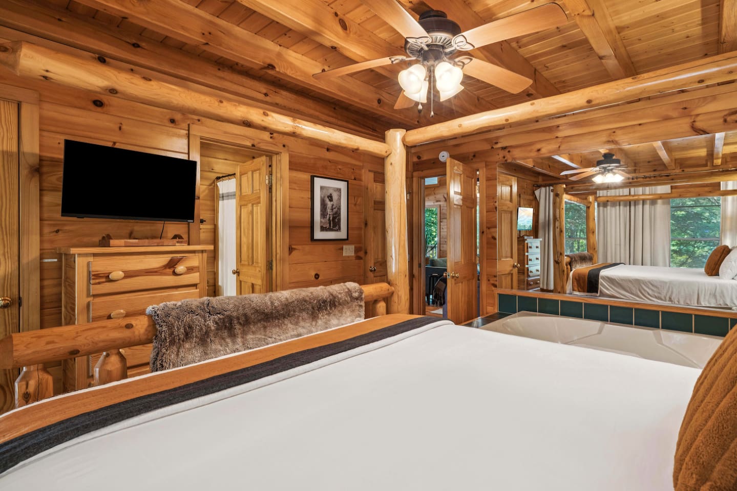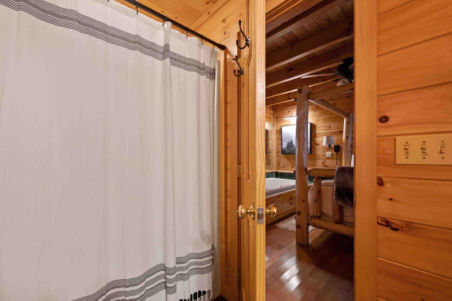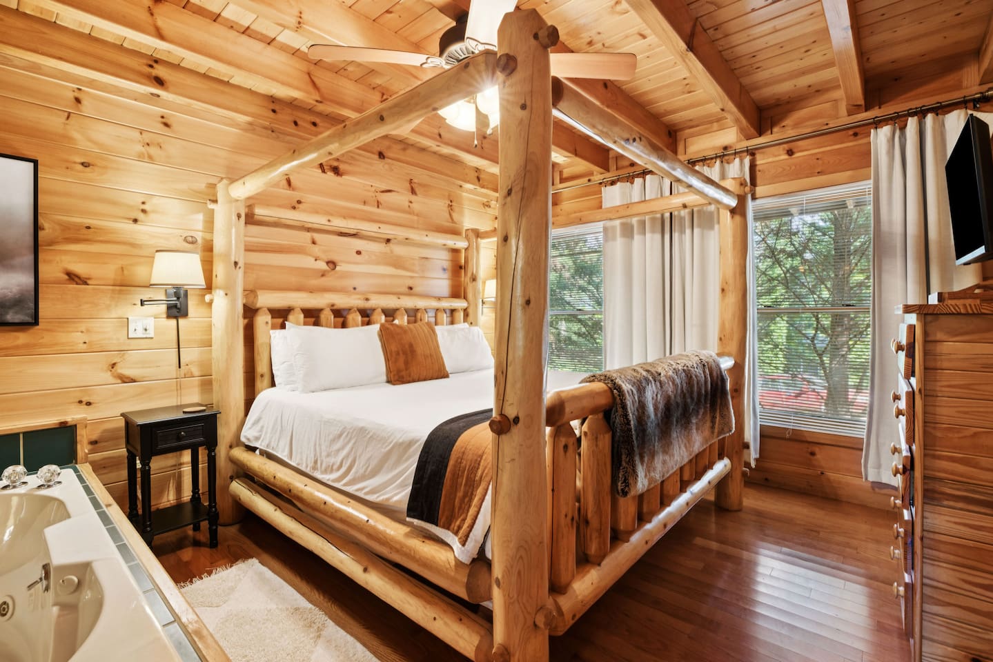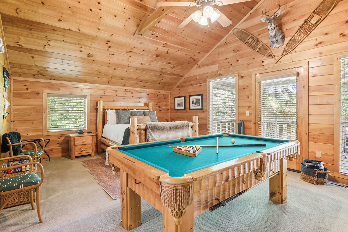 MOUNTAIN VIEW â˘There is no mountain view, but the secluded feeling of being in the tree tops makes up for it! ROADS â˘The roads are somewhat narrow and a few parts are steep/on an incline. They can also be dark at night. However, if you want to stay in the mountains you will have to navigate this with almost any property you book. Trust us, you will be a pro after you have driven the roads once! We encourage a four-wheel drive vehicle in the winter months due to the chance of snow. If it does snow, please be aware that the roads can freeze and the county isn't the best at clearing or salting the side roads. It's the South so it happens infrequently and they wait for it to melt. MASTER BEDROOM â˘The log king bed is very large & takes up most of the space in the master bedroom. The blackout curtains make it a perfect sleeping den though! WIFI â˘We have fiber internet now! Woo hoo! CELL SERVICE â˘Cell phone signal can be a bit spotty at times but typically works okay. It just may be a bit slow for browsing on your phone or video chatting if you're not using WIFI. LOFT â˘The loft sleeping and pool table area has no door. It is an open space. The bathroom up there does have a door though.