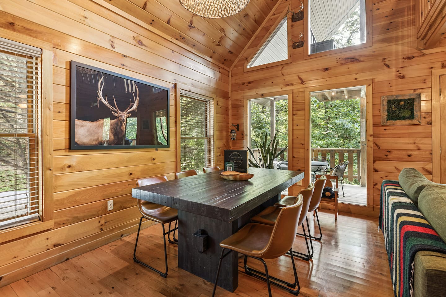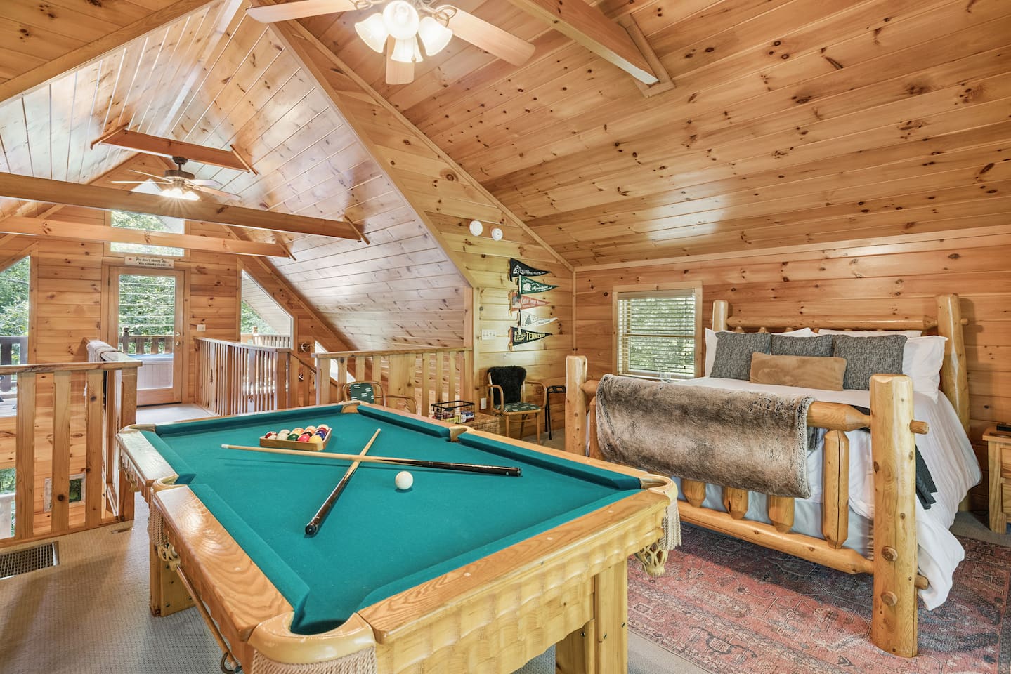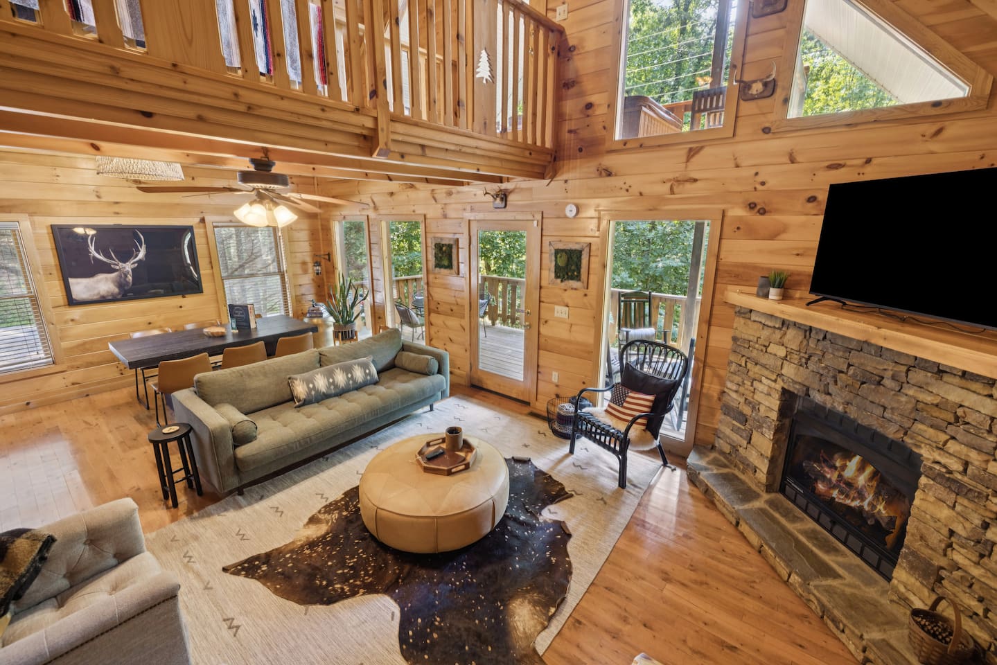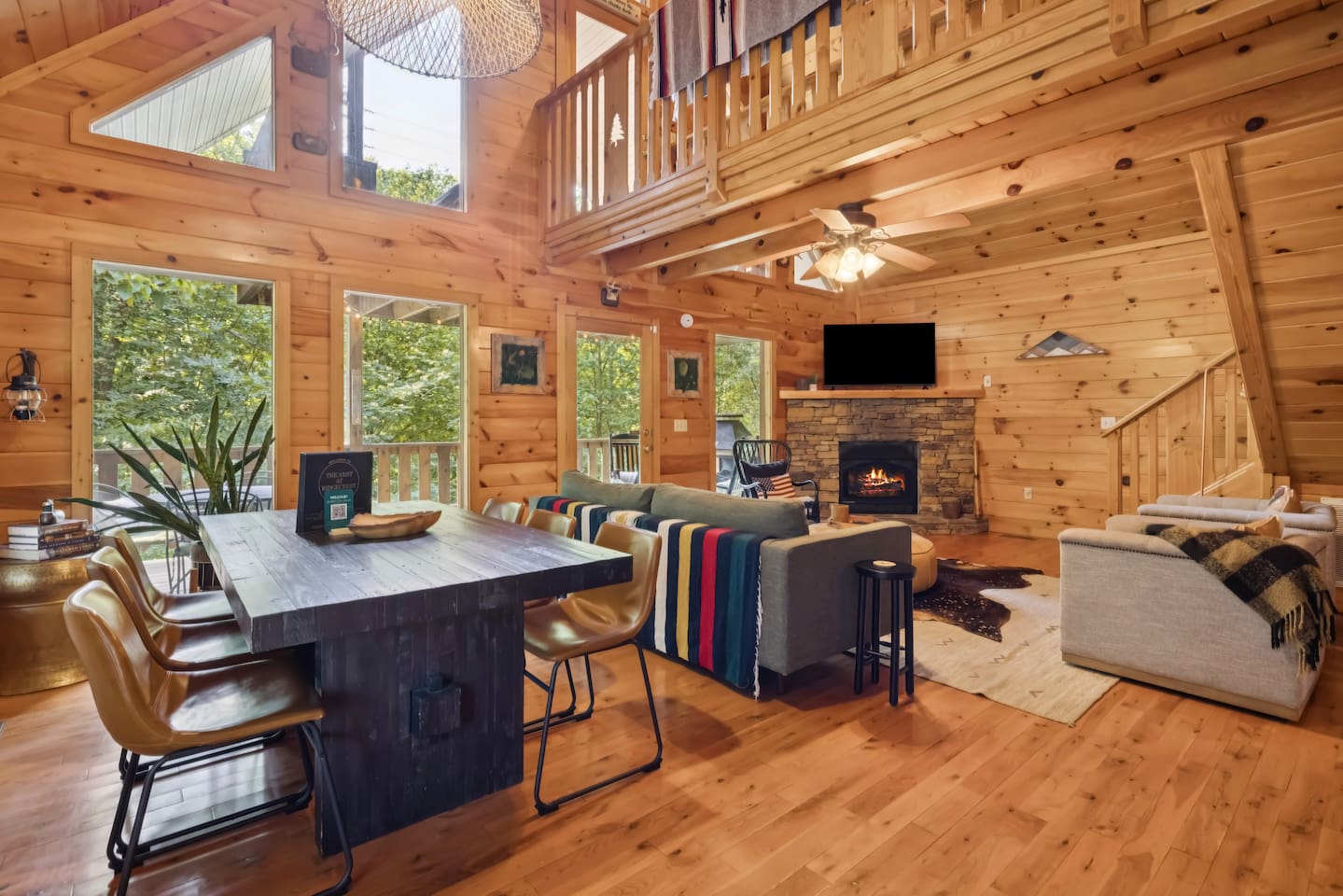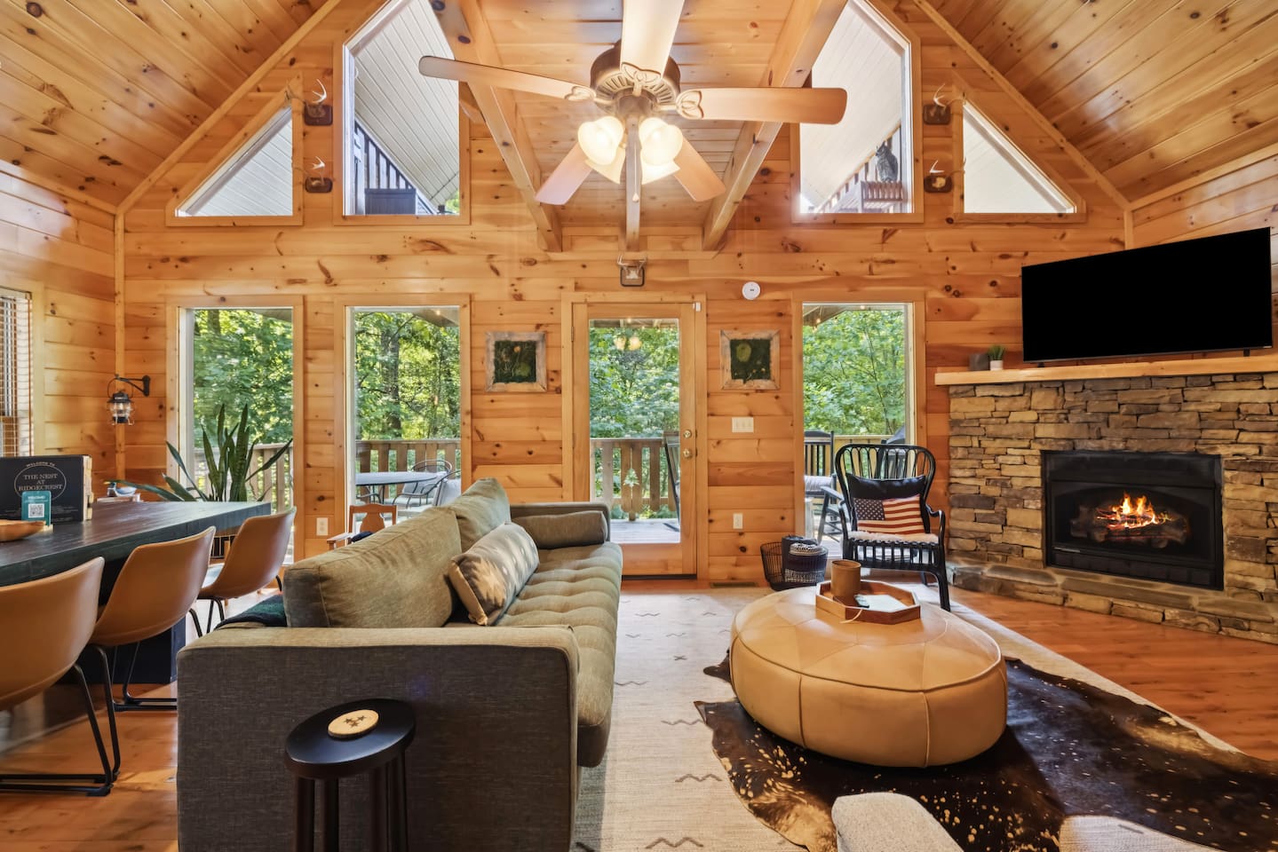 ââ YOUR HOME AWAY FROM HOME ââ If you're sick and tired of old run down cabins then The Nest At Ridgecrest will blow you away. There is no better feeling than hearing the sounds of nature, smelling the forest as it glistens under the moon, and gazing at the stars as you soak in the hot tub and deepen your state of relaxation. đAnakeesta: 9.6 miles đDollywood: 9.6 miles đDowntown Gatlinburg: 9.5 miles đGreat Smoky Arts & Crafts Community: 6.7 miles đGreat Smoky Mountains National Park: 10 miles đOber Gatlinburg: 10 miles đRocky Top Sports World: 6.4 miles đThe Island in Pigeon Forge: 7.7 miles â â MAIN LEVEL â â â˘Only 4 steps to enter the property with the top step only being 2-3 ft off the ground â˘Master bedroom with log king bed, 32" smart TV (Cable is provided with YouTube TV. Bring your own password for all other apps.), jacuzzi tub, and en suite full bathroom with tub/shower combo â˘Washer and dryer in master bedroom closet â˘Fully stocked kitchen (Keurig and regular coffee pot provided) â˘Dining table that seats 6 â˘Living area with 55" smart TV. Cable is provided with YouTube TV. Bring your own password for all other apps. â˘Outside deck with dining table for 4 and four rocking chairs â˘Outdoor gas fireplace (available year-round) â˘Indoor gas fireplace (Available October 1 - March 31) â â UPPER LEVEL / OPEN LOFT â â â˘Queen log bed â˘Full bathroom with tub/shower combo â˘43" Smart TV. Cable is provided with YouTube TV. Bring your own password for all other apps. â˘Pool table â˘Catwalk leading to upper deck with hot tub â˘Another upper deck off of sleeping area â˘Four yoga mats â˘Closet with 2 single cots that guests can set up for children/small adults; we've found that the cots are a lot more comfortable than a sofa bed or air mattress â â THE PROPERTY â â â˘Property is on 1 acre so there will not be other cabins right next to or in front of you (for example: a big cabin development), but there is one cabin across the street. There are also other cabins sprinkled along our road. â˘Paved roads all the way â˘Outdoor BBQ grill (we do not provide charcoal) â â CABIN AMENITIES â â â˘A startup supply of regular coffee, decaf coffee, and hot chocolate pods is provided â˘A startup supply of tea, sugar, and creamer is provided â˘Travel-sized shampoo, conditioner, body wash, and lotion is provided â˘Paper towels, toilet paper, trash bags and dishwasher pods are provided â˘All quality linens and towels are provided â â SOCIALS â â â˘Follow us @modernmountainnests for more photos, a video tour, and additional videos!